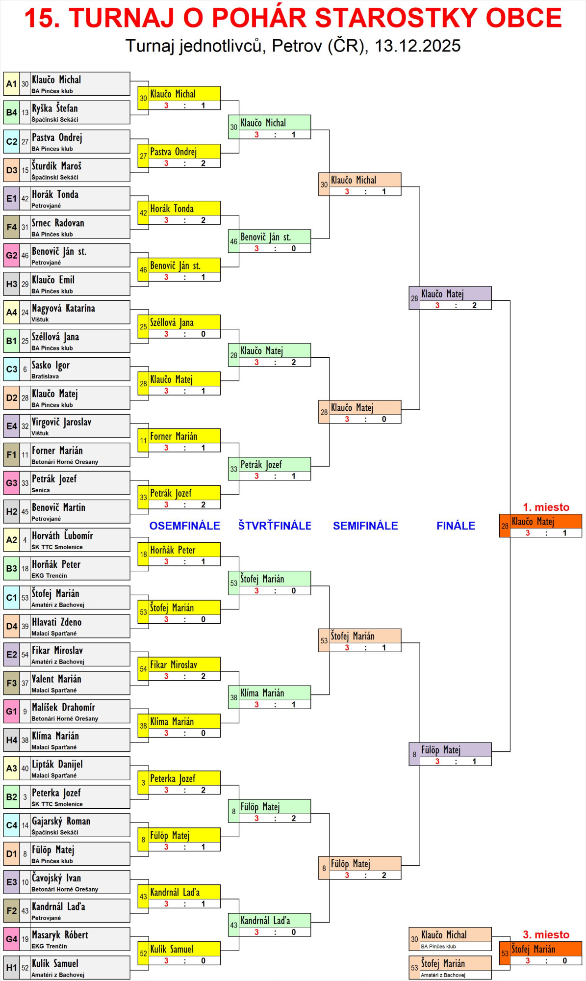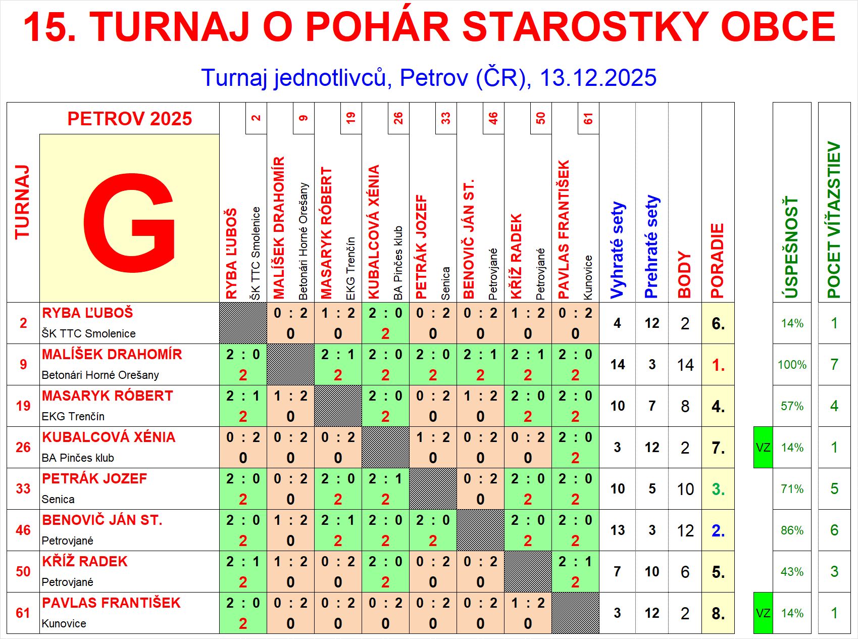 | G6 | 2 | 4 | 12 | Ryba Ľuboš | ŠK TTC Smolenice | SVK | |