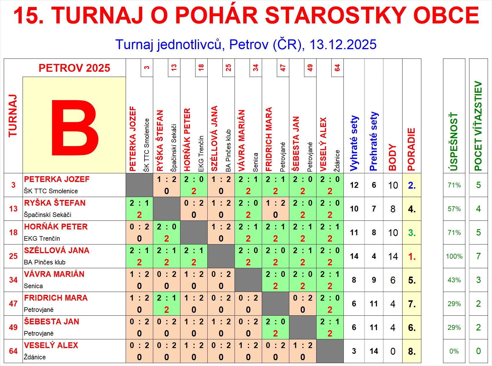 | B2 | 10 | 12 | 6 | Peterka Jozef | ŠK TTC Smolenice | SVK | |