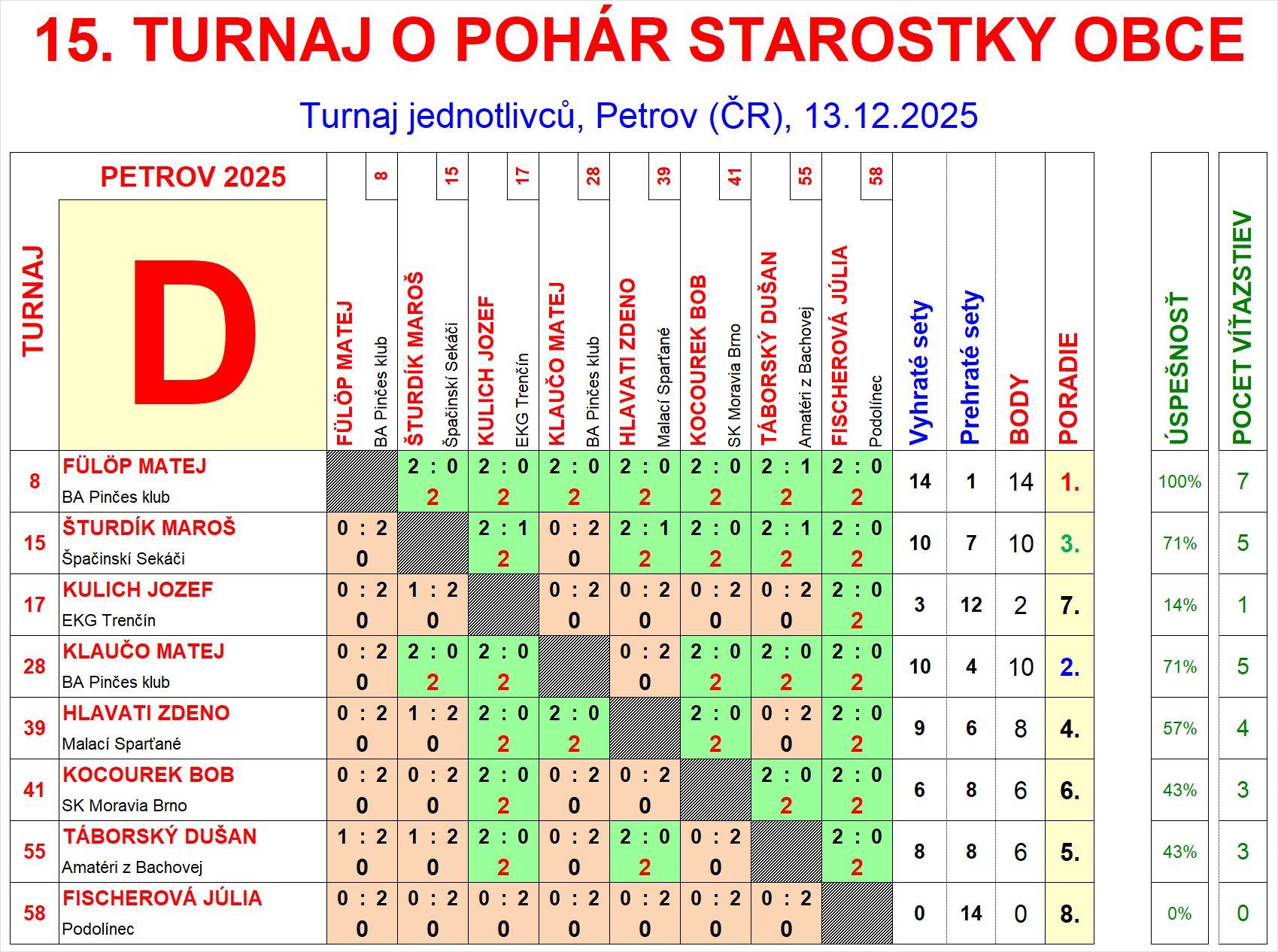 | D4 | 8 | 9 | 6 | Hlavati Zdeno | Malací Sparťané | SVK | |