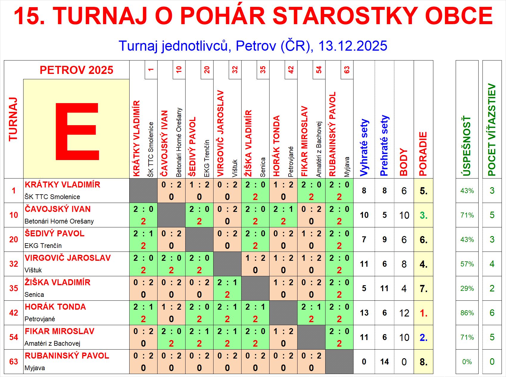 | E8 | 0 | 0 | 14 | Rubaninský Pavol | Myjava | SVK | |