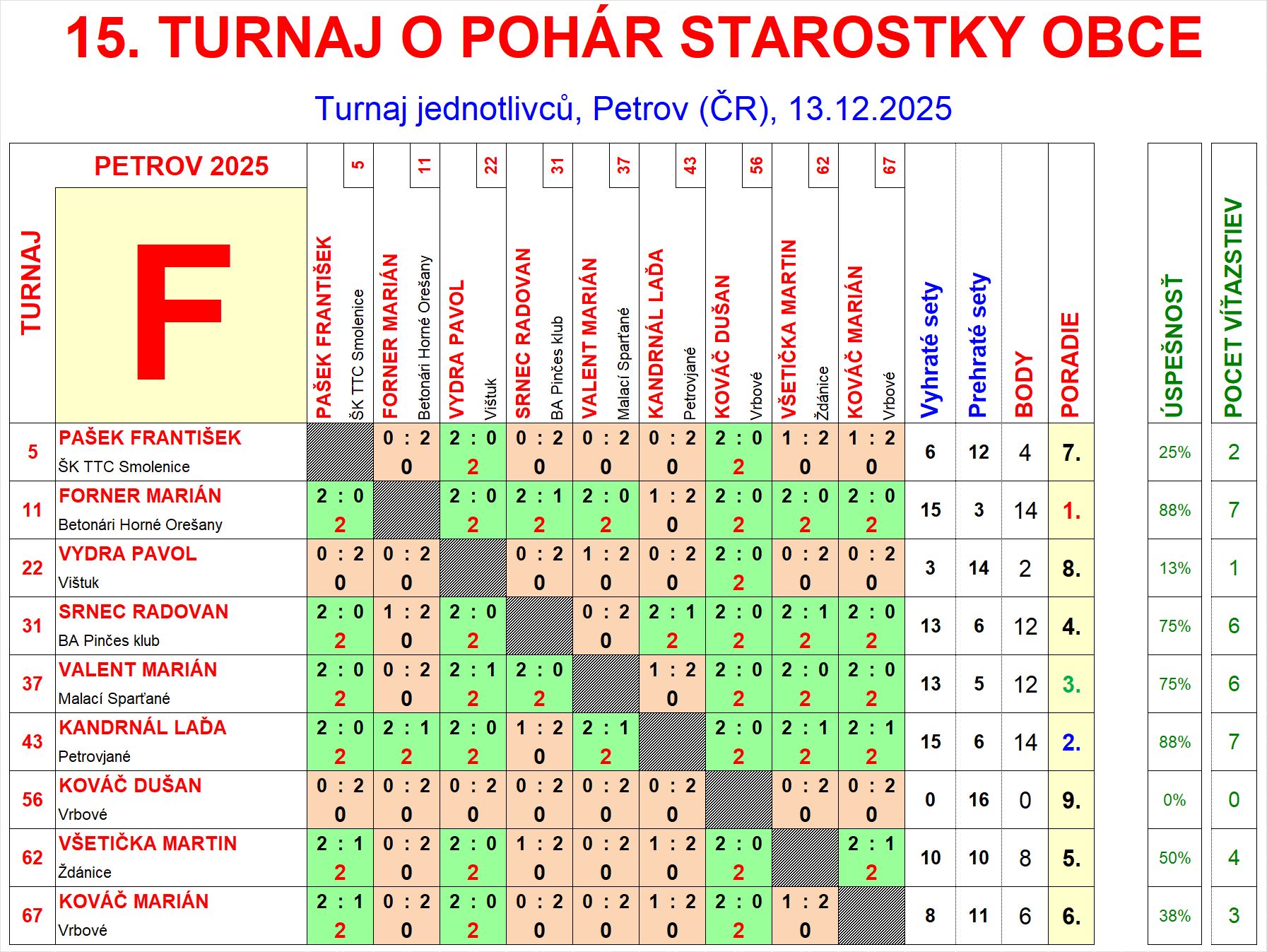 | F9 | 0 | 0 | 16 | Kováč Dušan | Vrbové | SVK |