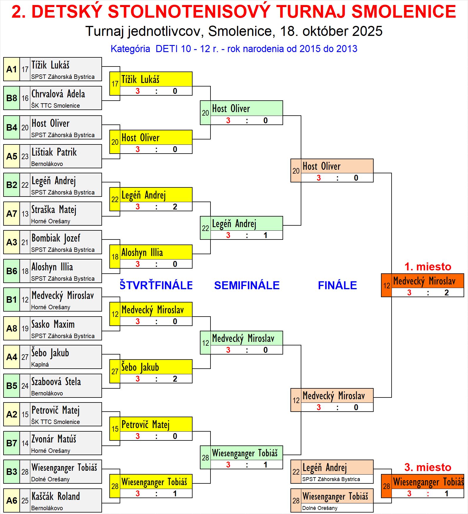 | 4. miesto | J4 | 0 | 3 | 12 | Malíšek Tobiáš | Horné Orešany | SVK |