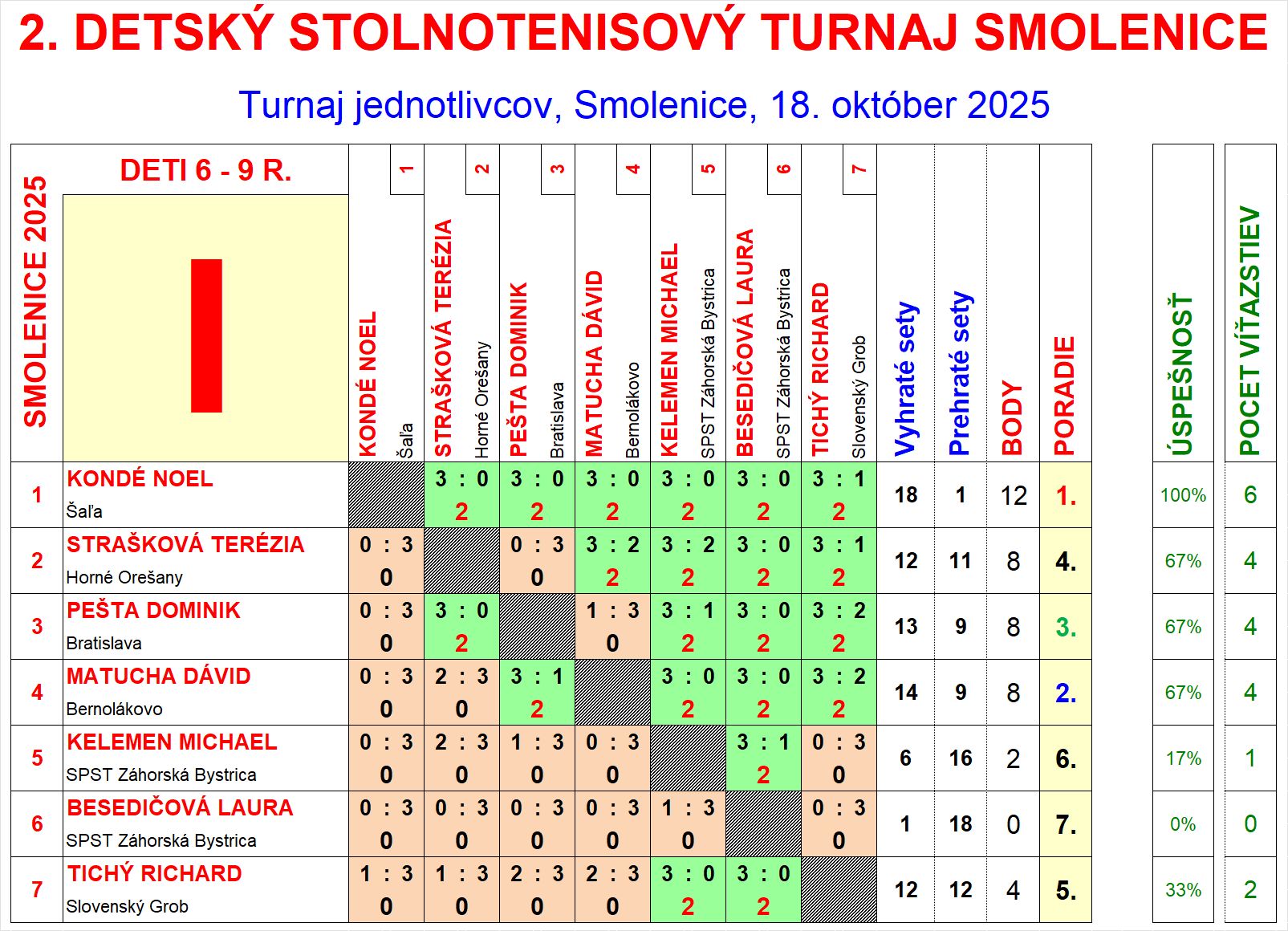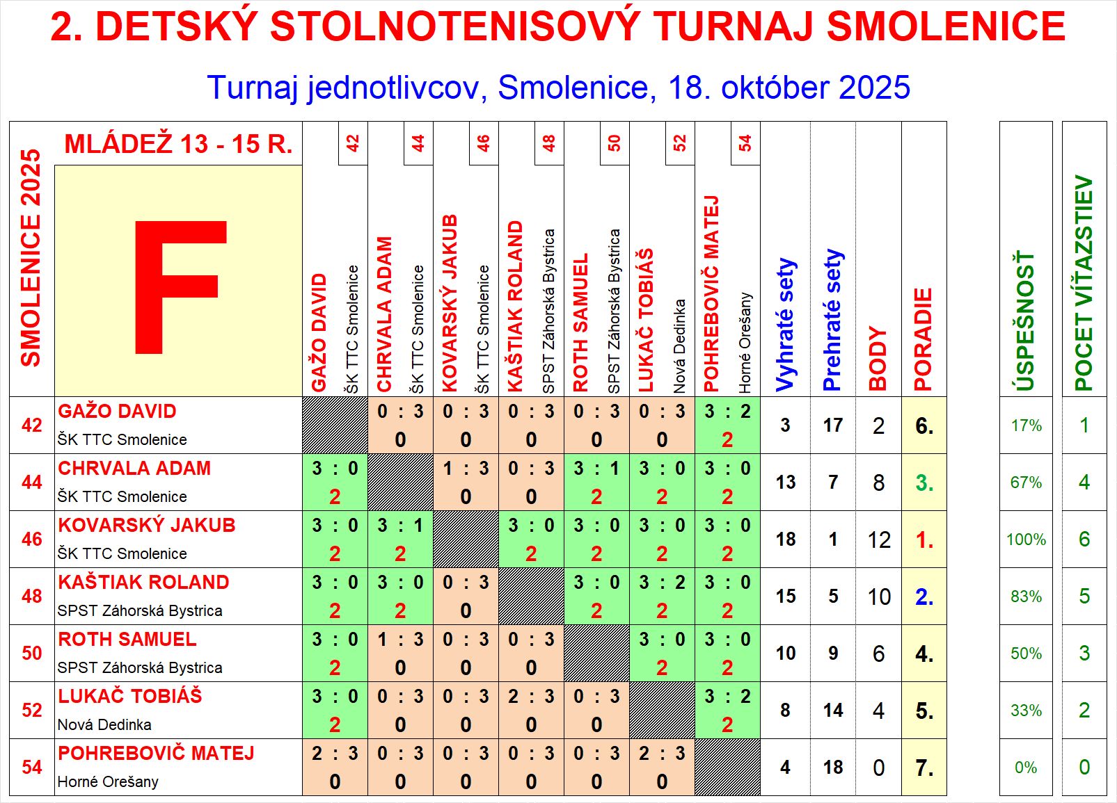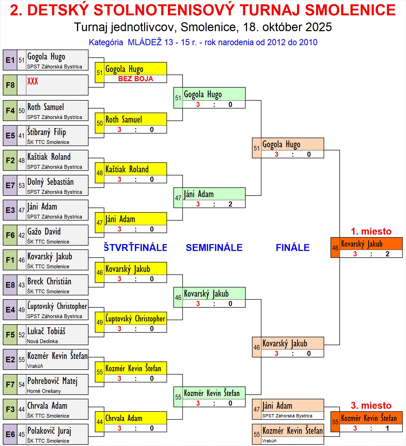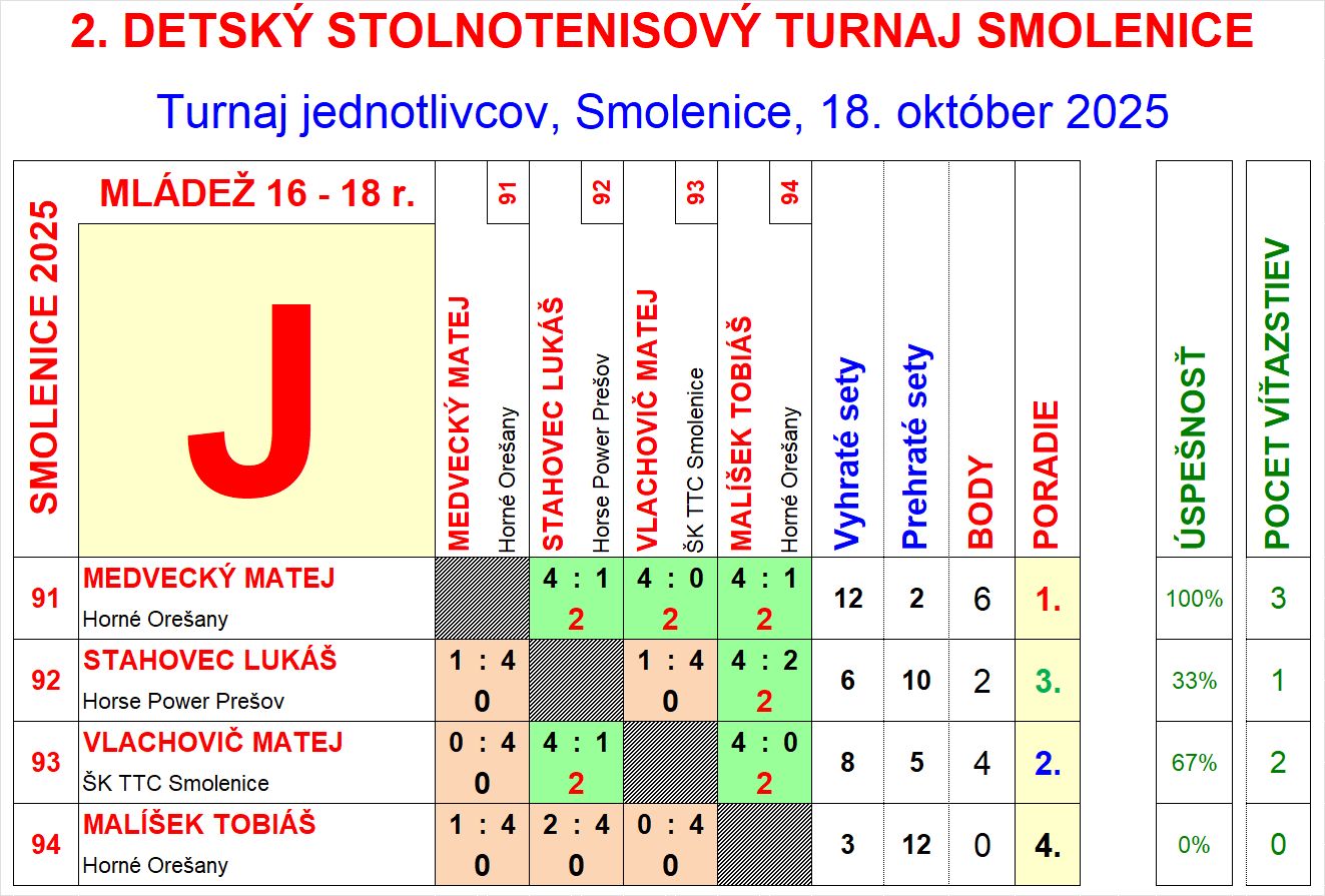 | 3. miesto | J3 | 2 | 7 | 8 | Vlachovič Matej | ŠK TTC Smolenice | SVK |
