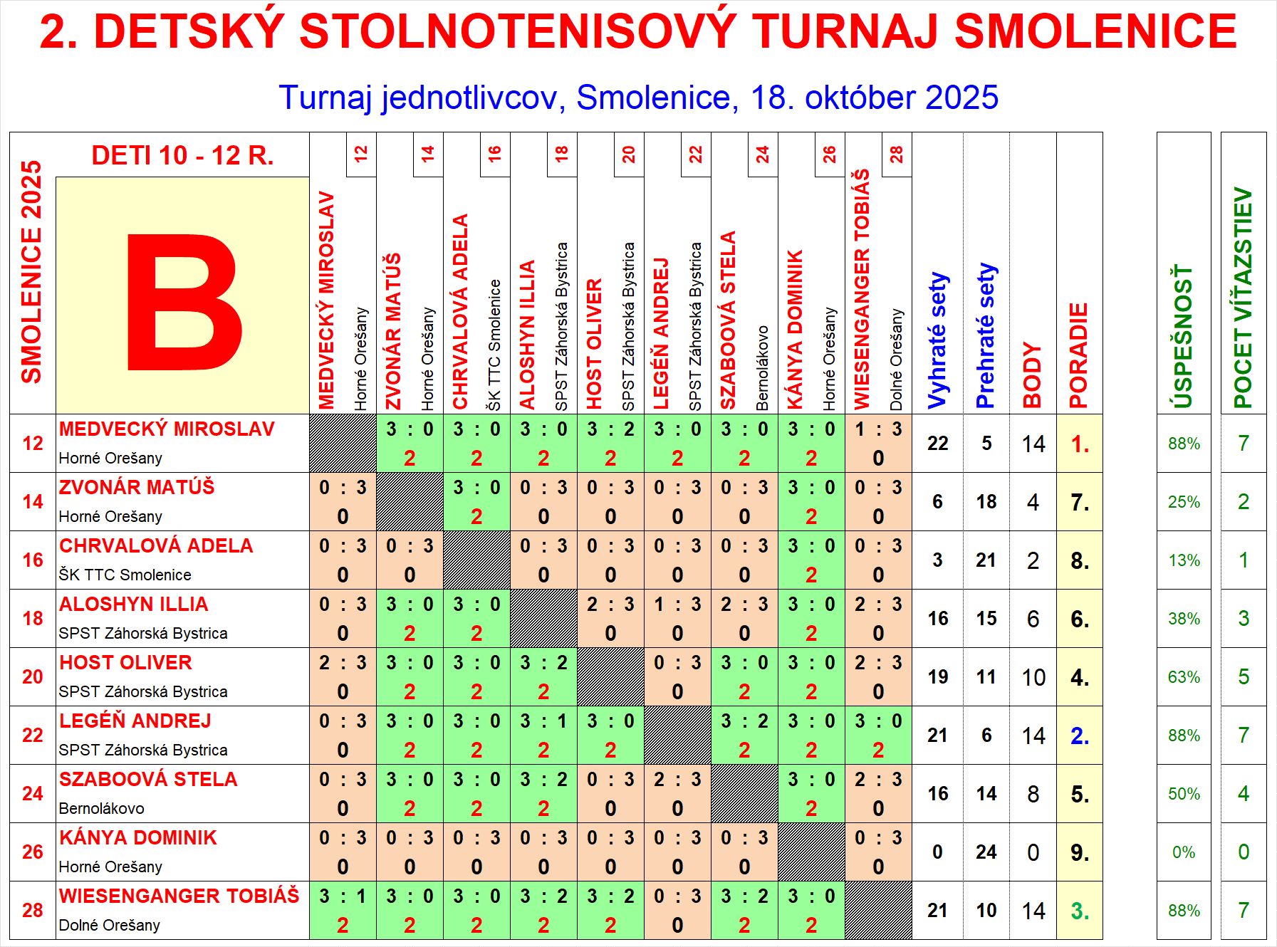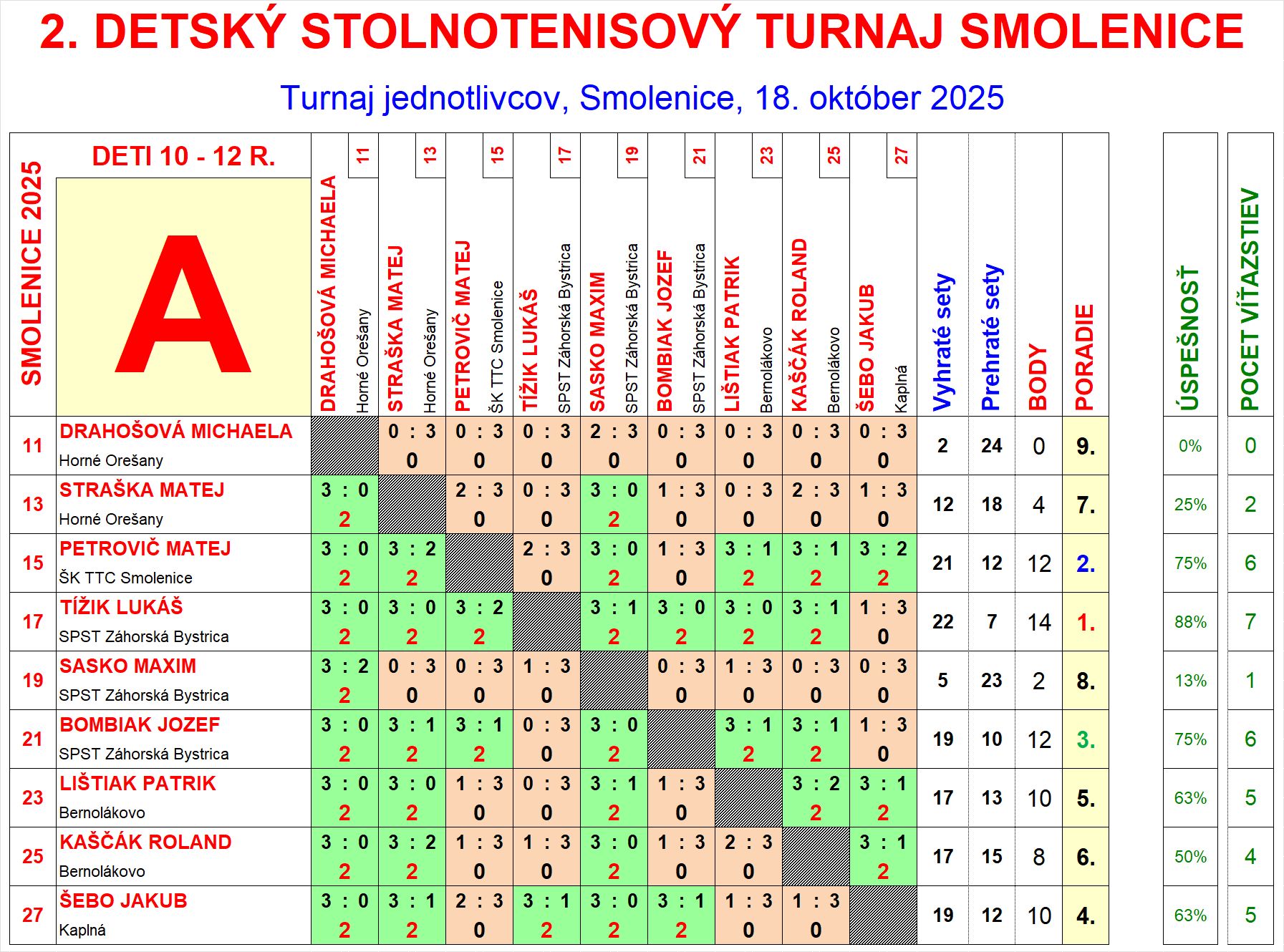 | A2 | 12 | 21 | 12 | Petrovič Matej | ŠK TTC Smolenice | SVK | |