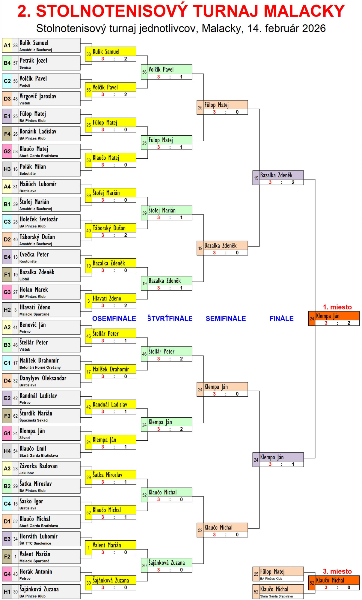 | 1. miesto | G1 | 14 | 14 | 3 | Klempa Ján | Závod | SVK |