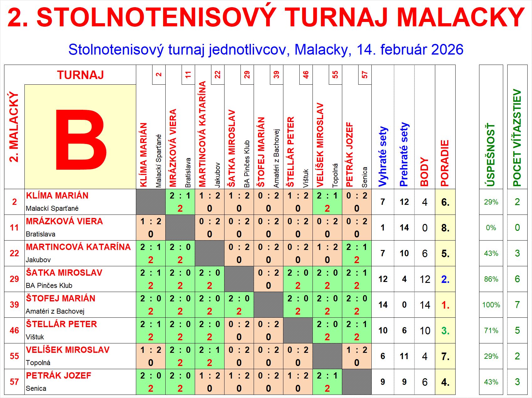 | B1 | 14 | 14 | 0 | Štofej Marián | Amatéri z Bachovej | SVK | |