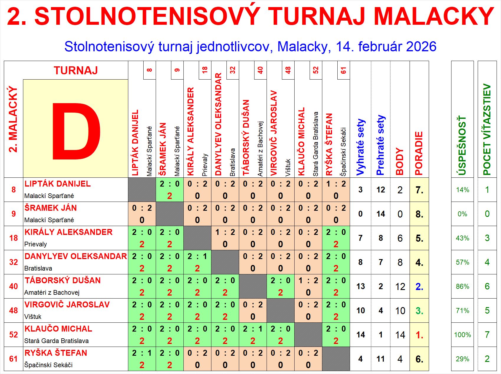 | D8 | 0 | 0 | 14 | Šramek Ján | Malackí Sparťané | SVK | |