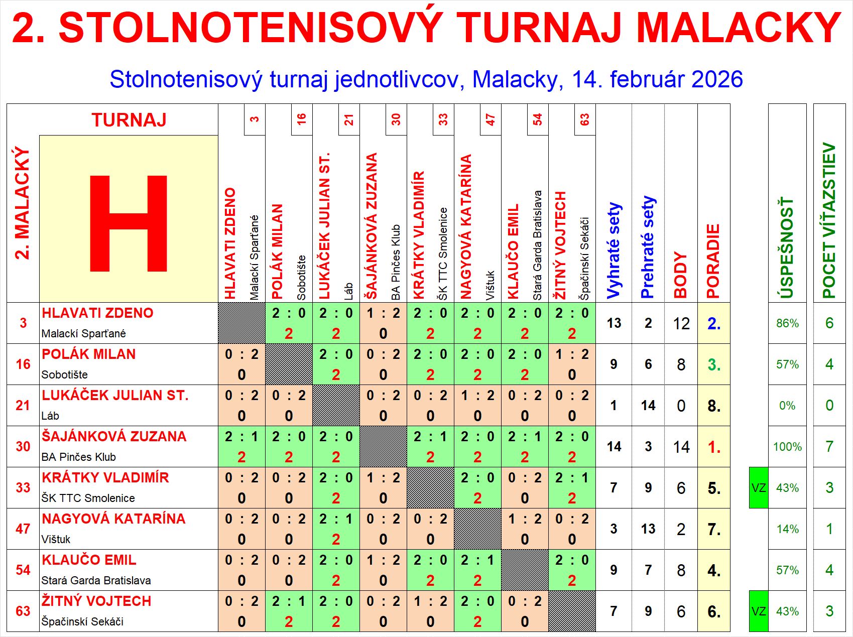 | H2 | 12 | 13 | 2 | Hlavati Zdeno | Malackí Sparťané | SVK | |